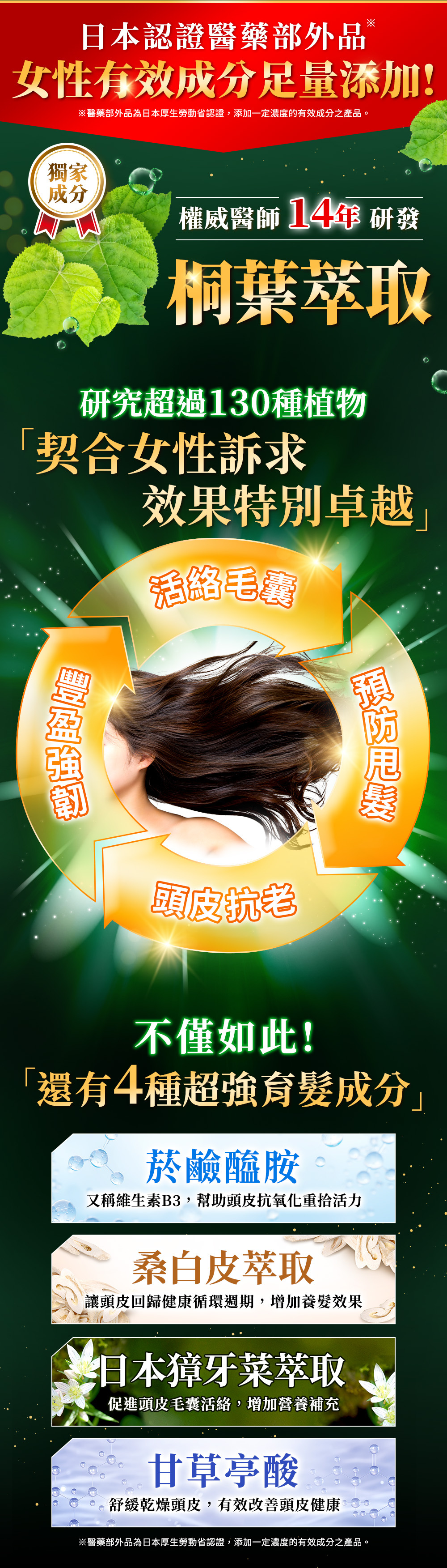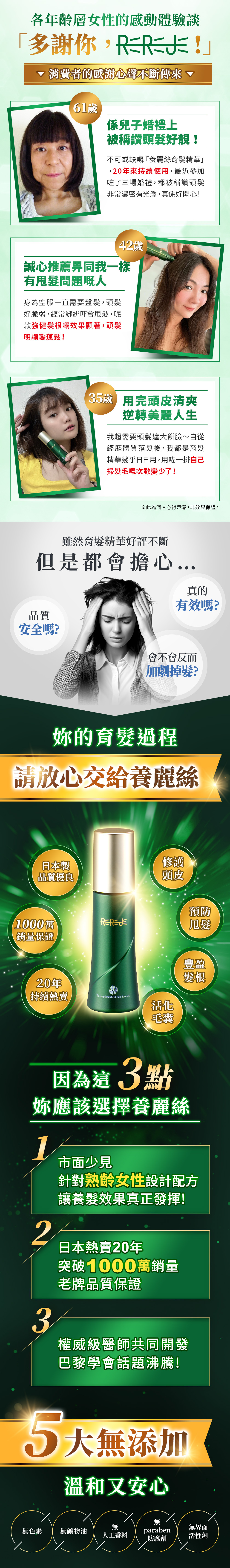 以獨家配方 調配出超過8種以上美容液的養髮成分